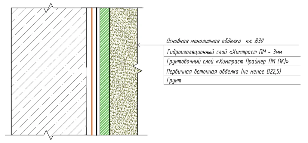 Рисунок 2 — Устройство гидроизоляционной системы «Химтраст ПМ» методом «стена в грунте»
